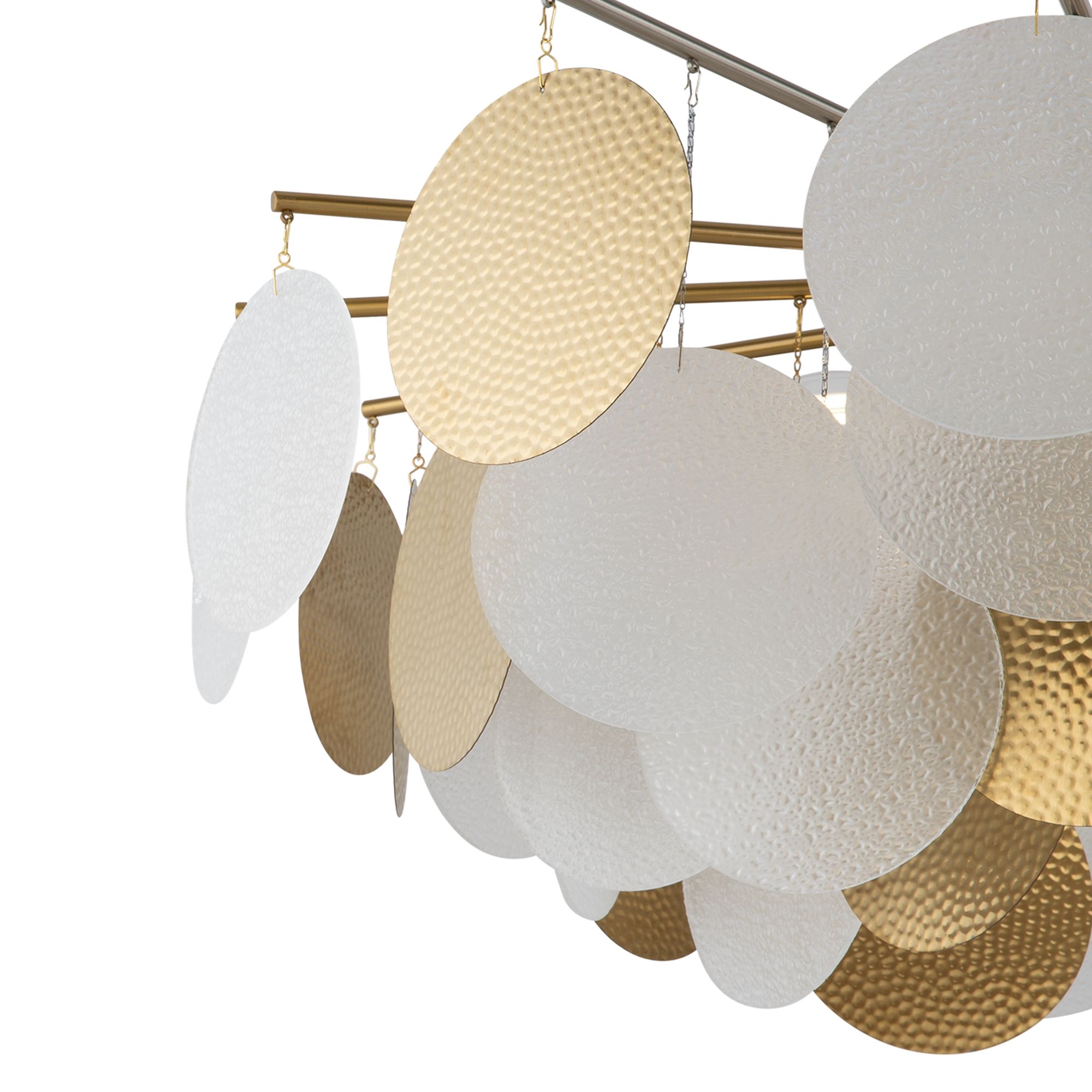 Магия фактур запечатлена в дизайне серии Porto. Изюминка модели – декор в виде тонких округлых пластин с эффектом замороженного стекла. Популярная серия имеет два цветовых решения: декор цвета рисовых полей, а также комбинация фактурного стекла и металлических пластин в цвете латунь. Арматура светильников в серии представлена в двух оттенках – латунь и никель. Тонко очерченные рожки и воздушный стеклянный декор создают трендовый эффект парения. Светильник словно замирает в воздухе, образуя своеобразную визуальную иллюзию. Модель предназначена для комнат, оформленных в стиле ар-деко, модерн, неоклассика. Серия включает люстры различного диаметра на 6 и 8 ламп.