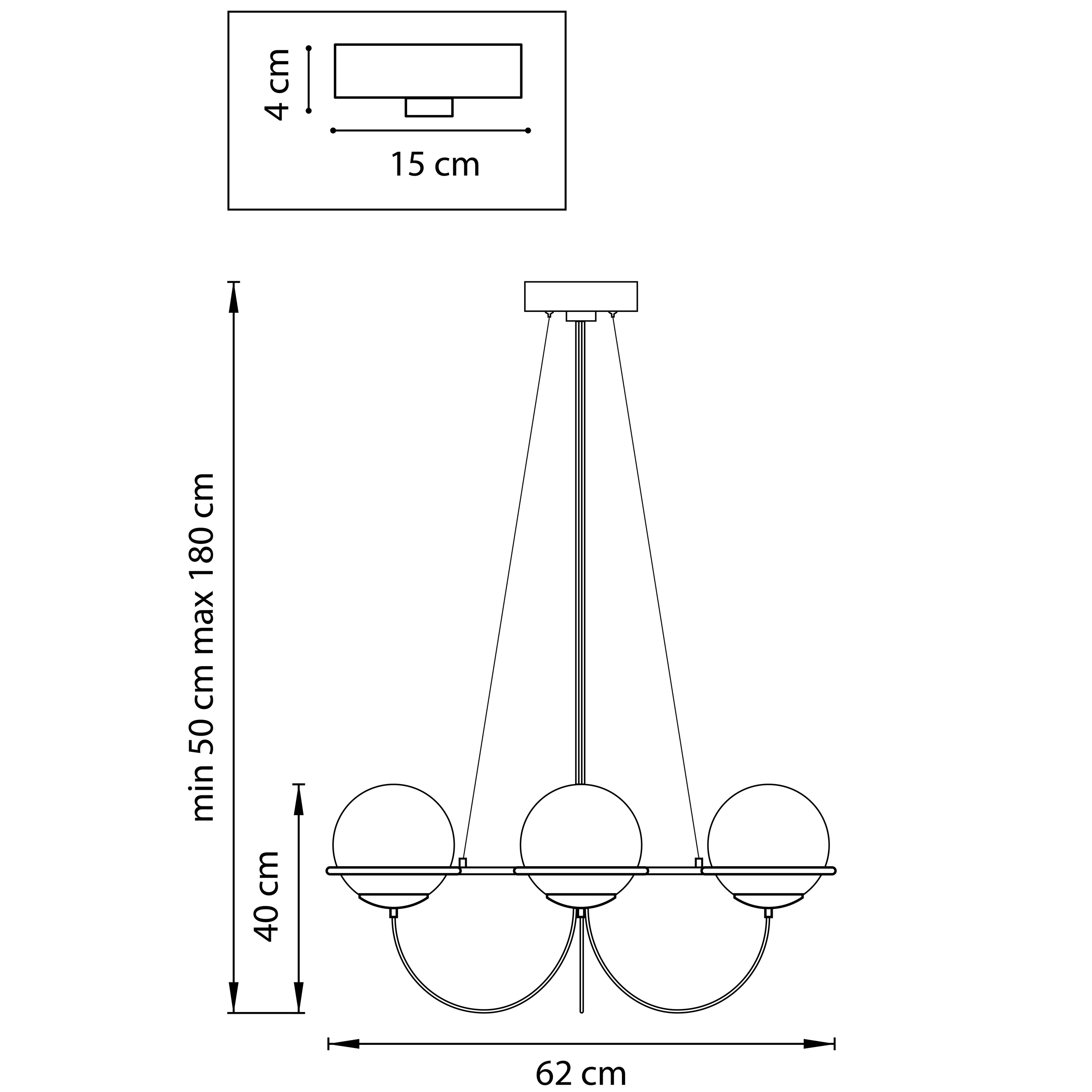Высота min-max (см): 50-180; Ширина (см): 62; Вес (кг): 3,8; Кол-во ламп: 6хE14; Мощность max (W): 40; Цвет основания/цвет стекла или абажура: Champagne/White;