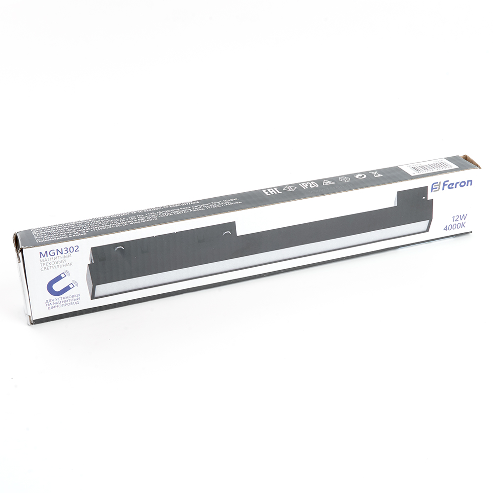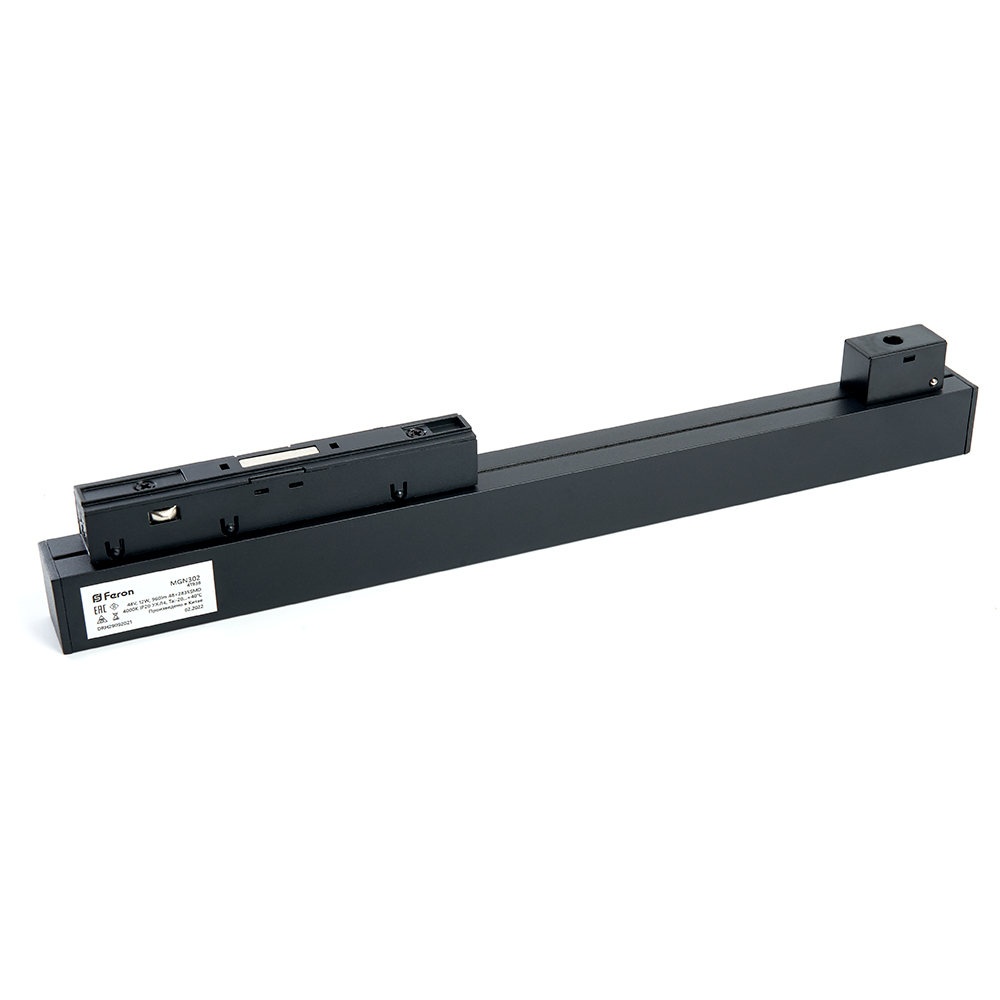 Светильник трековый на шинопровод, - (ДПО) FERON MGN302, 12W, 4000К (белый), 48V, 960Lm, цвет черный, корпус алюминий, рассеиватель поликарбонат, 300*22*43 мм